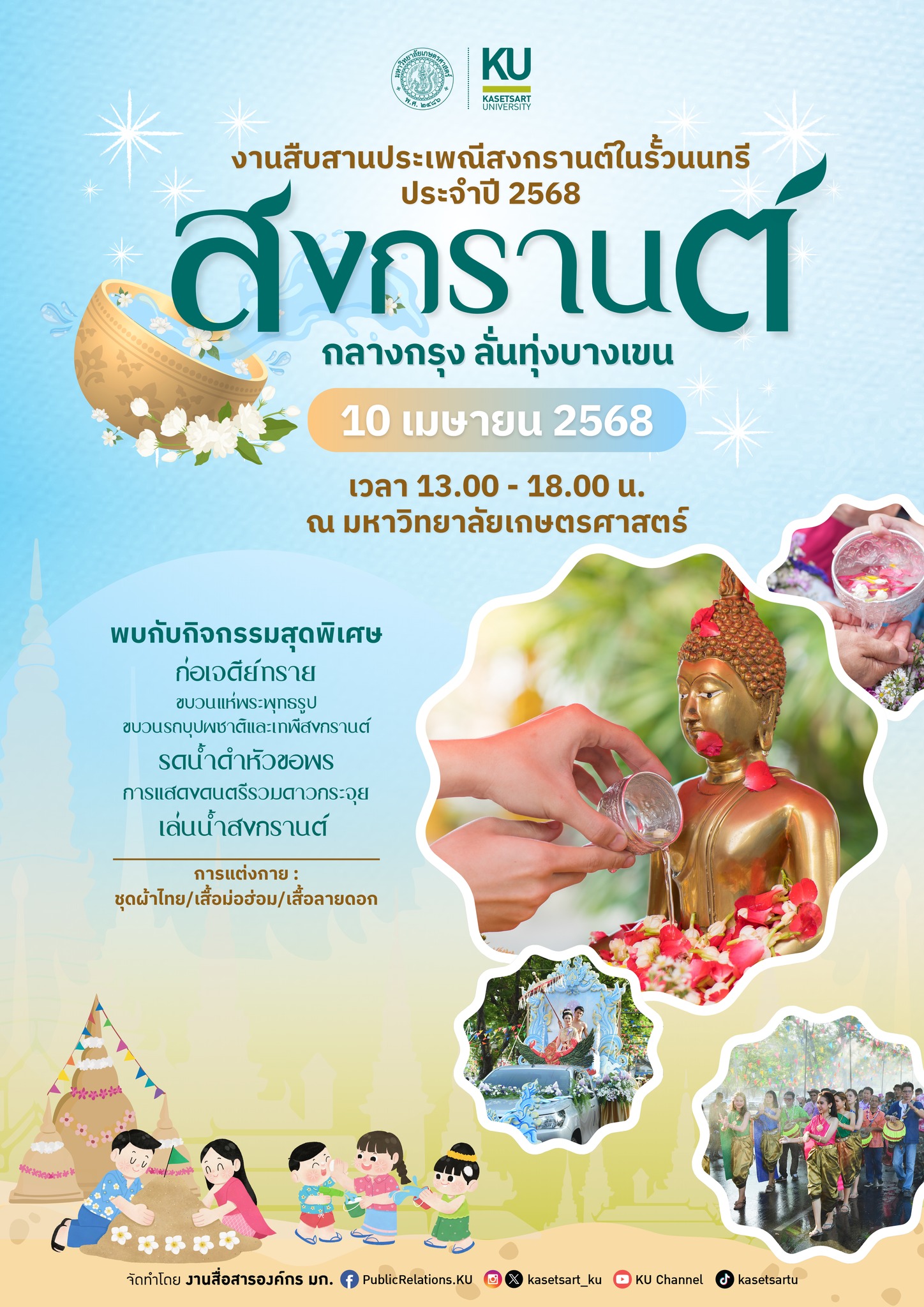 ร่วมงานสืบสานประเพณีสงกรานต์ในรั้วนนทรี ประจำปี 2568 "สงกรานต์กลางกรุง ลั่นทุ่งบางเขน" วันที่ 10 เมษายน 2568 เริ่ม 13.30 น.
